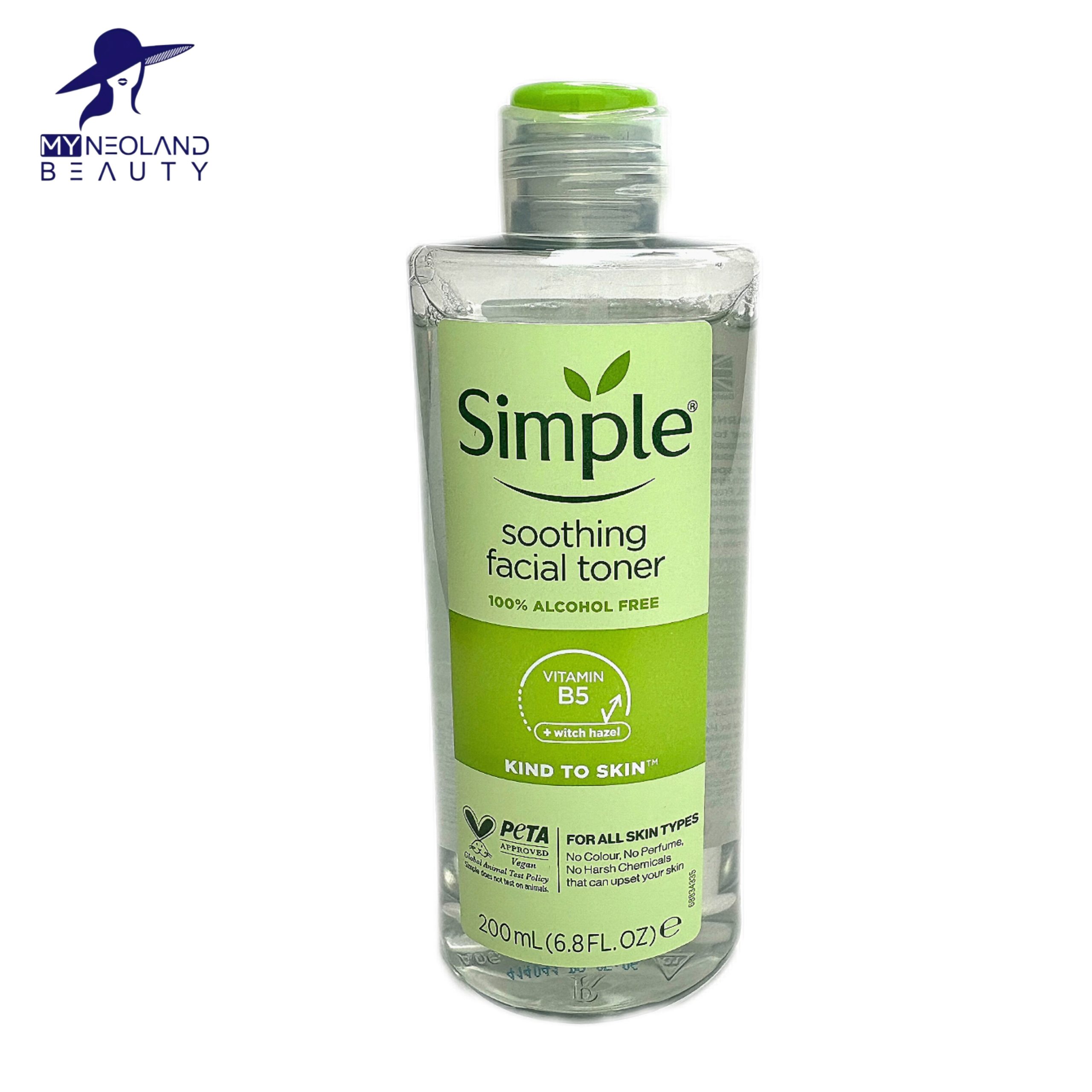تونر سیمپل حاوی ترکیباتی مثل پرو ویتامین B5، بابونه، فندق افسونگر و آلانتوئین است که دارای خاصیت ضد التهابی و التیام بخشی هستند. این تونر فاقد الکل، عطر، رنگ و مواد شیمیایی خشن با پوست است و هیچ گونه آسیبی به پوست شما وارد نمی کند؛ همچنین غیر کومدون زا است و باعث بروز جوش نمی شود.